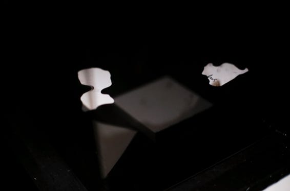 Mein Thesis begleitendes Bachelorprojekt „3W. Who am I? Who do I want to be and where?” soll diese nun um eine weitere „W-Frage“ dem „Wo“ erweitern, sie auf den physischen Raum der Reflektion durch einen Betrachter erweitern und in Form einer performativen Installation erlebbar machen. „3W“ soll den Betrachter durch drei Räume, drei Stationen und durch drei unterschiedliche Formen der Wahrnehmung navigieren. Der Betrachter begibt sich zunächst auf eine Expedition durch das Dickicht der multimedialen Reizüberflutung, dann in einen Raum der Selbstwahrnehmung und Selbstidentifizierung bis zum „Großen Anderen“ – seiner selbst kreierten moralischen Instanz. Dort kann er aufgeworfenen Fragen, Wünsche oder auch Gedanken aufschreiben. Diesen Aufschrieb wirft er dann in eine durchsichtige, mit Tinte befüllte Kiste. Die Tinte lässt das Festgehaltene verschwinden und richtet somit die geschriebene Nachricht an den Betrachter selbst. „3W“ soll einen Perspektivenwechsel des Betrachters auf sich selbst und seine Umgebung forcieren und so Bewusstsein schaffen.