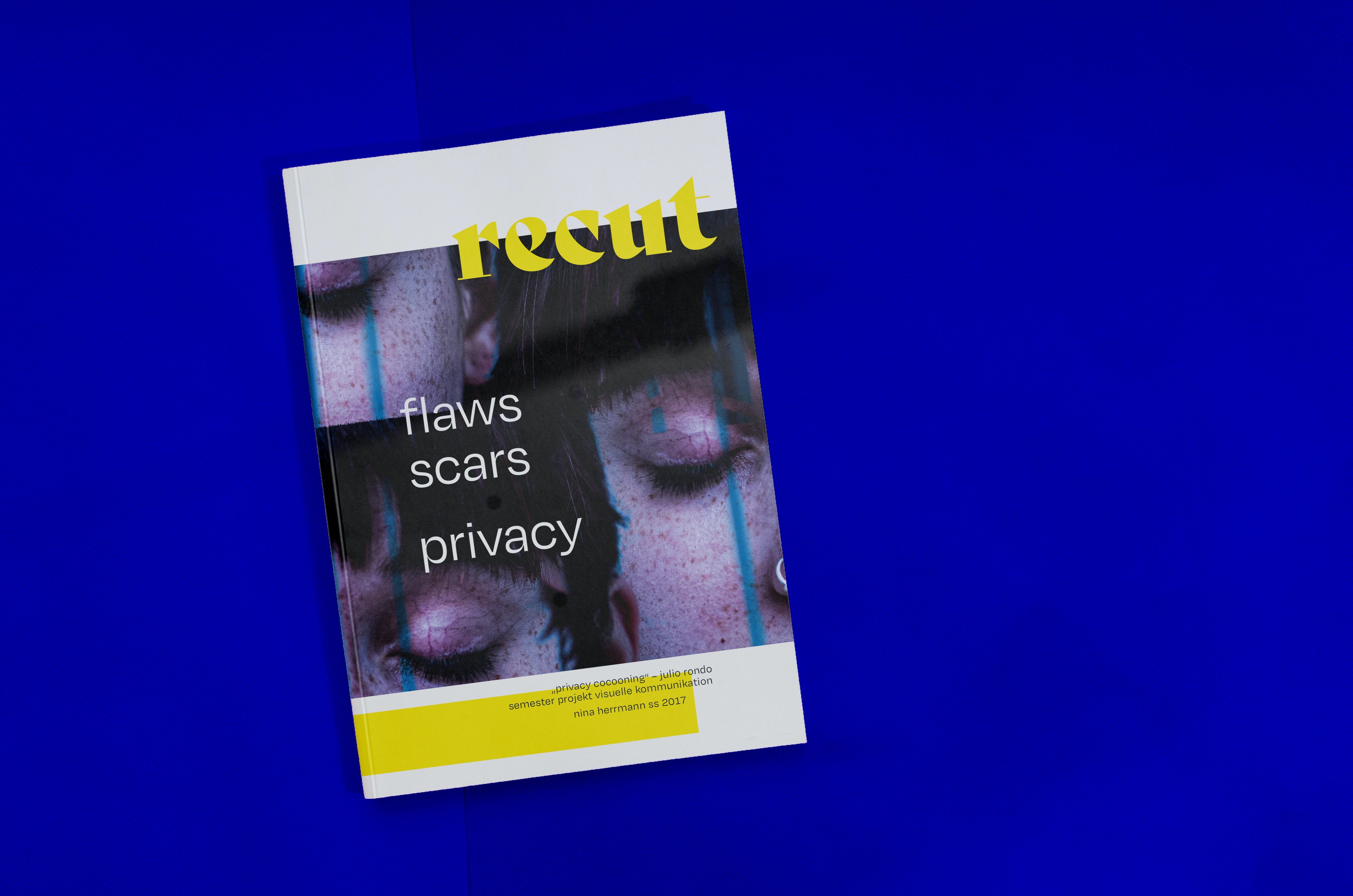 „cut / recut“ macht einen Einschnitt in die Privatheit – ein Magazin über die Ästhetik von natürlich- individuellen Merkmalen und deren Schönheit. Schönheitsideale tendieren immer mehr ins Extreme. Die Mode- und Schönheitsindustrie, als auch die sozialen Medien motivieren jeden Tag straffer, fitter und schöner zu werden – dünner, stärker und jünger zu wirken. Glatte, sonnengebräunte Haut ohne jeden Makel. So zumindest stellen wir uns auf den sozialen Medien dar.